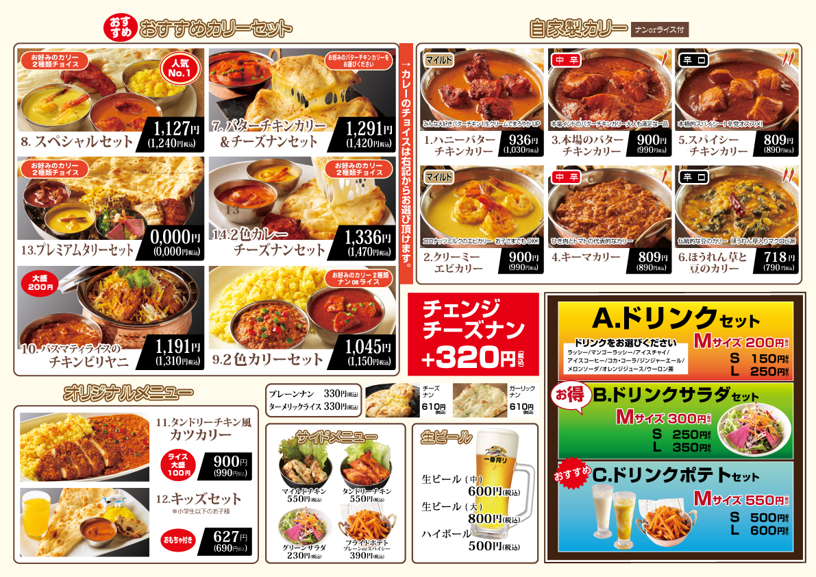 1958年創業の本場インドレストランの味を気軽に!香り高いスパイスたっぷりのカレーに、タンドール窯で焼き上げたモチモチのナンや大人気のチーズナンも♪フードコートで本格インド体験をどうぞ!お子様に大人気!キッズセットもご用意しております。